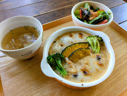米粉・豆乳でお作りしたホワイトソースを使用し、チーズも豆乳から作られたものを使用しております。